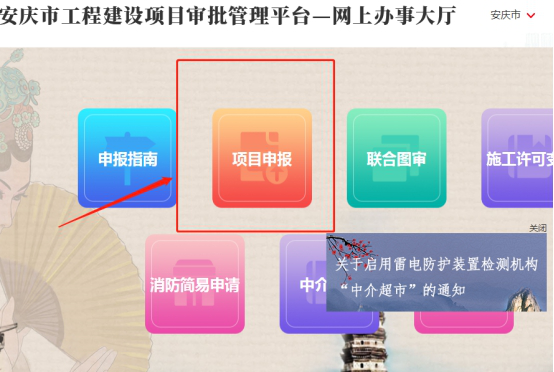1. 找到主題集成服務(wù)中工程建設(shè)模塊選擇安慶市