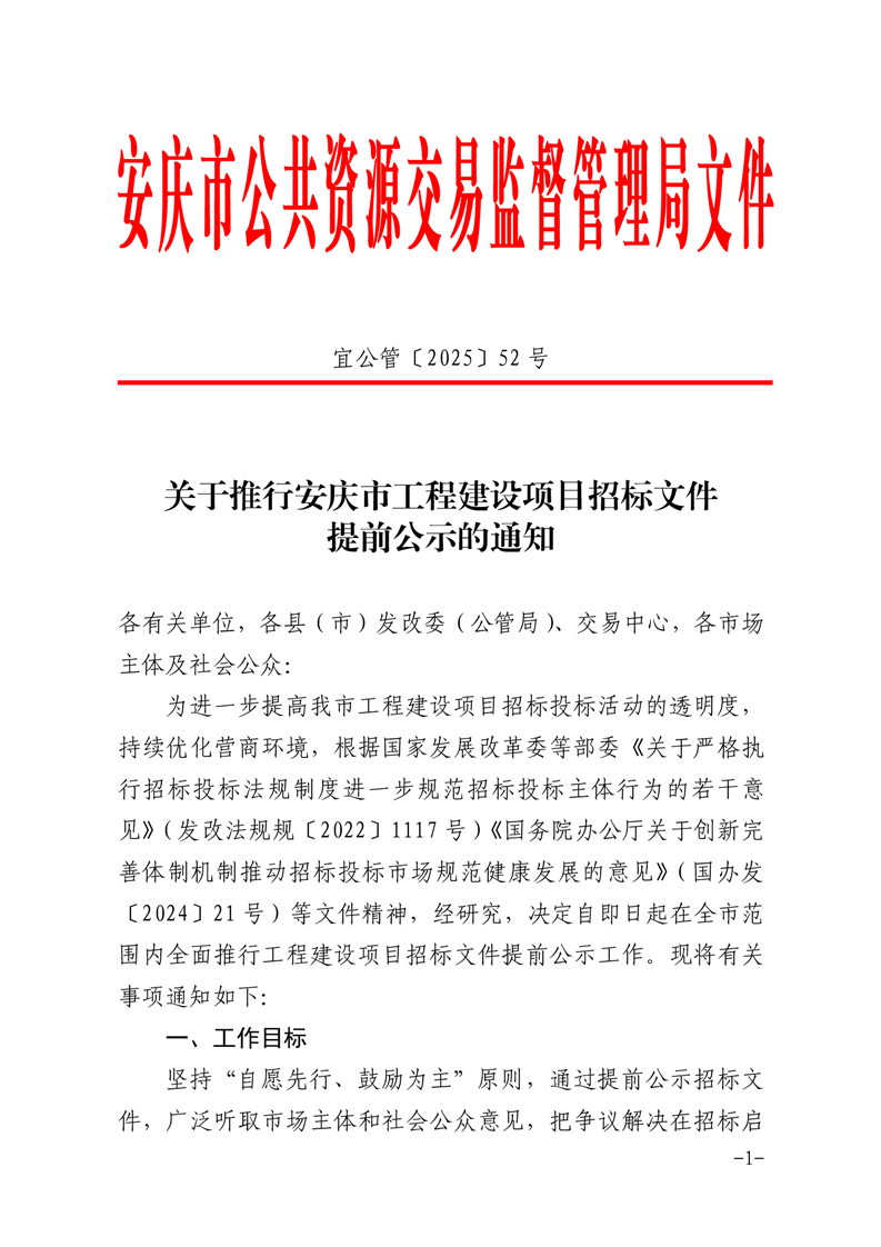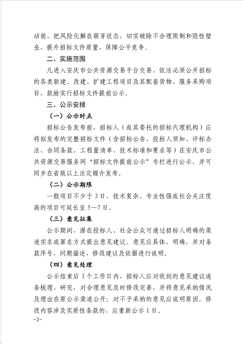 關于推行安慶市工程建設項目招標文件提前公示的通知
