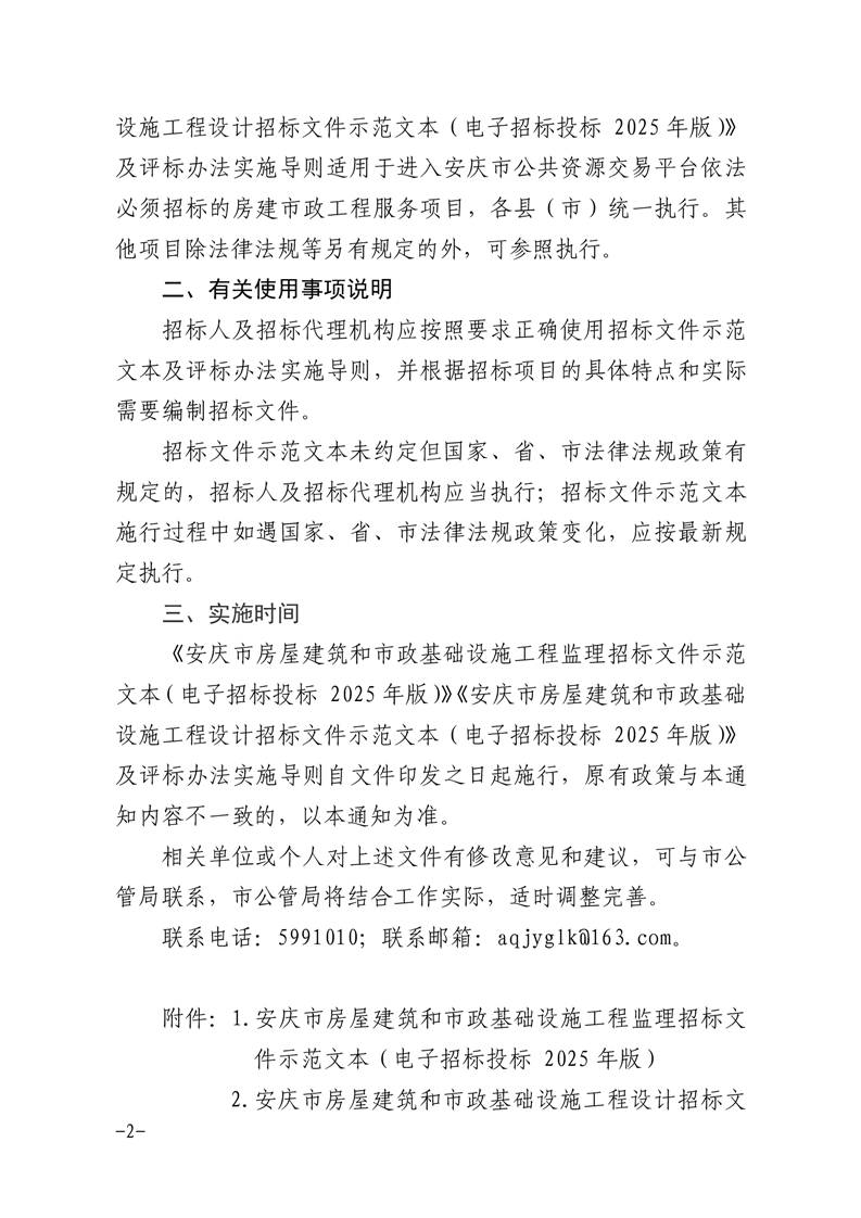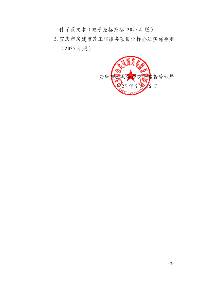 安慶市公管局關(guān)于印發(fā)《安慶市房屋建筑和市政基礎(chǔ)設(shè)施工程監(jiān)理招標(biāo)文件示范文本(電子招標(biāo)投標(biāo) 2025年版)》等三個(gè)文件的通知