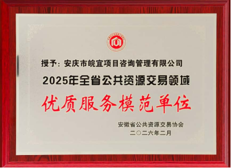 會(huì)上,對(duì)2025年度全省公共資源交易領(lǐng)域先進(jìn)典型進(jìn)行了表彰。皖宜公司斬獲“2025 年創(chuàng)新發(fā)展優(yōu)質(zhì)服務(wù)模范單位”榮譽(yù)稱(chēng)號(hào);公司職工唐娟被授予“2025 年全省公共資源交易領(lǐng)域先進(jìn)標(biāo)兵”榮譽(yù)稱(chēng)號(hào)。